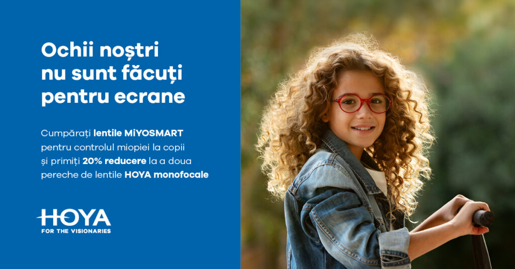 Miopia nu mai trebuie să fie o condamnare la ochelari cu lentile din ce în ce mai groase. La Aldox Optica, oferim părinților soluția Hoya MiYOSMART, prima lentilă de ochelari care nu doar corectează vederea, ci acționează ca un tratament non-invaziv. Folosind tehnologia revoluționară D.I.M.S., aceste lentile inteligente gestionează modul în care lumina ajunge în ochi, încetinind creșterea dioptriilor cu o medie de 60% comparativ cu lentilele standard. Este o metodă sigură, ușoară și eficientă de a proteja vederea pe termen lung a copilului tău, oferindu-i libertate la joacă și performanță la școală, fără disconfortul picăturilor sau al lentilelor de contact.